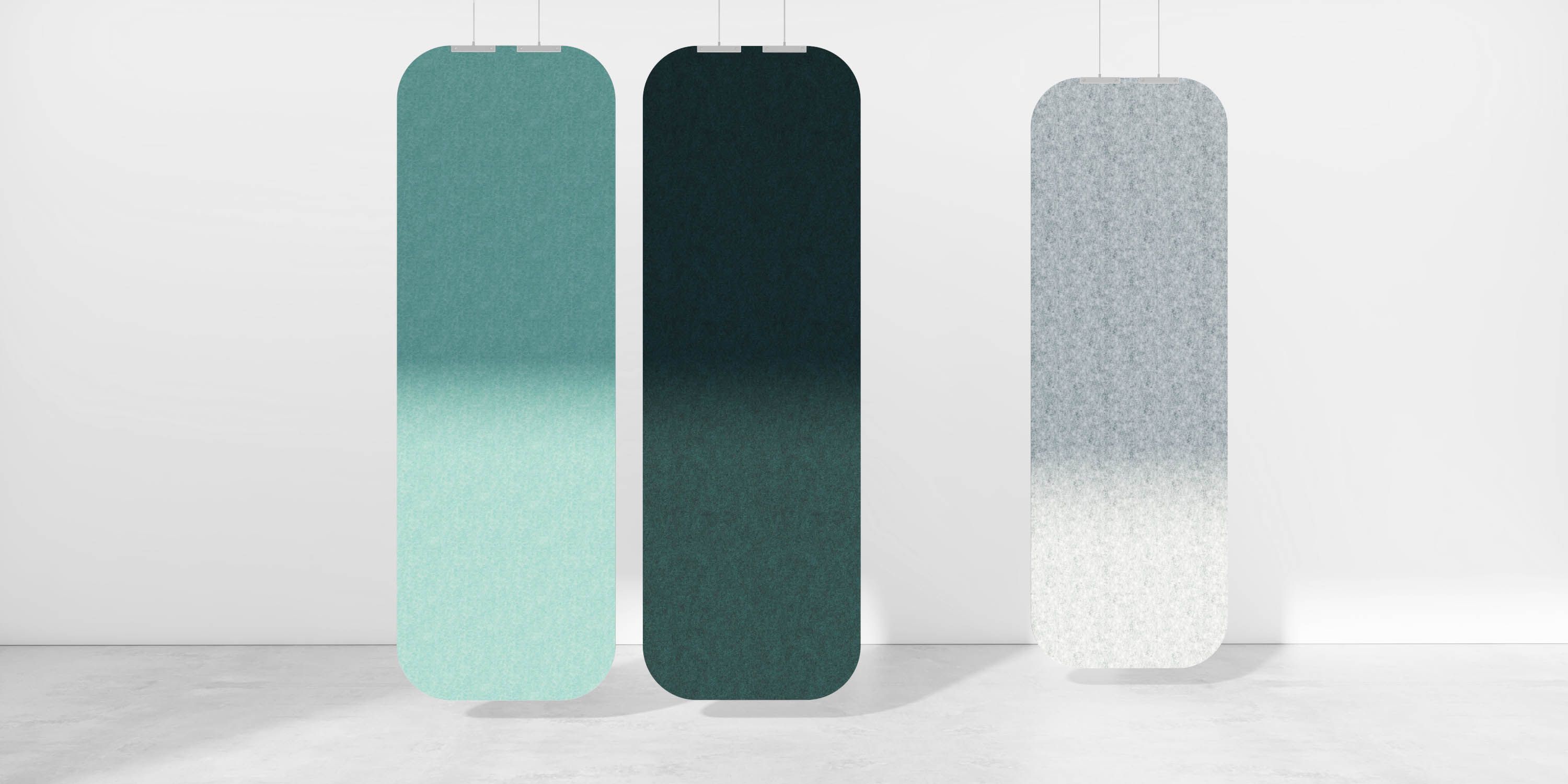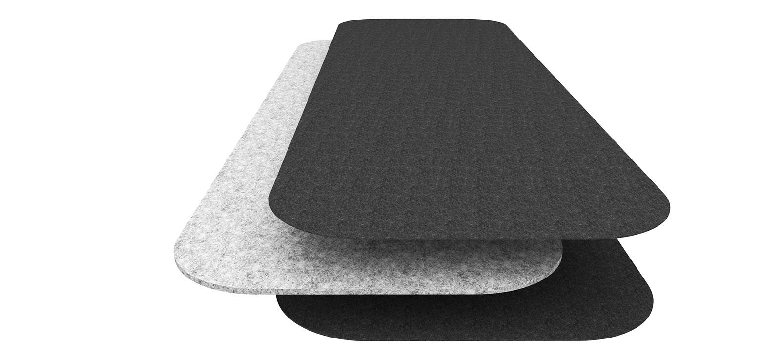 The elements of the collection in its basic version are made of PET boards. Additional layers of acoustic felt allow for a wider choice of colours and make the product look more attractive.