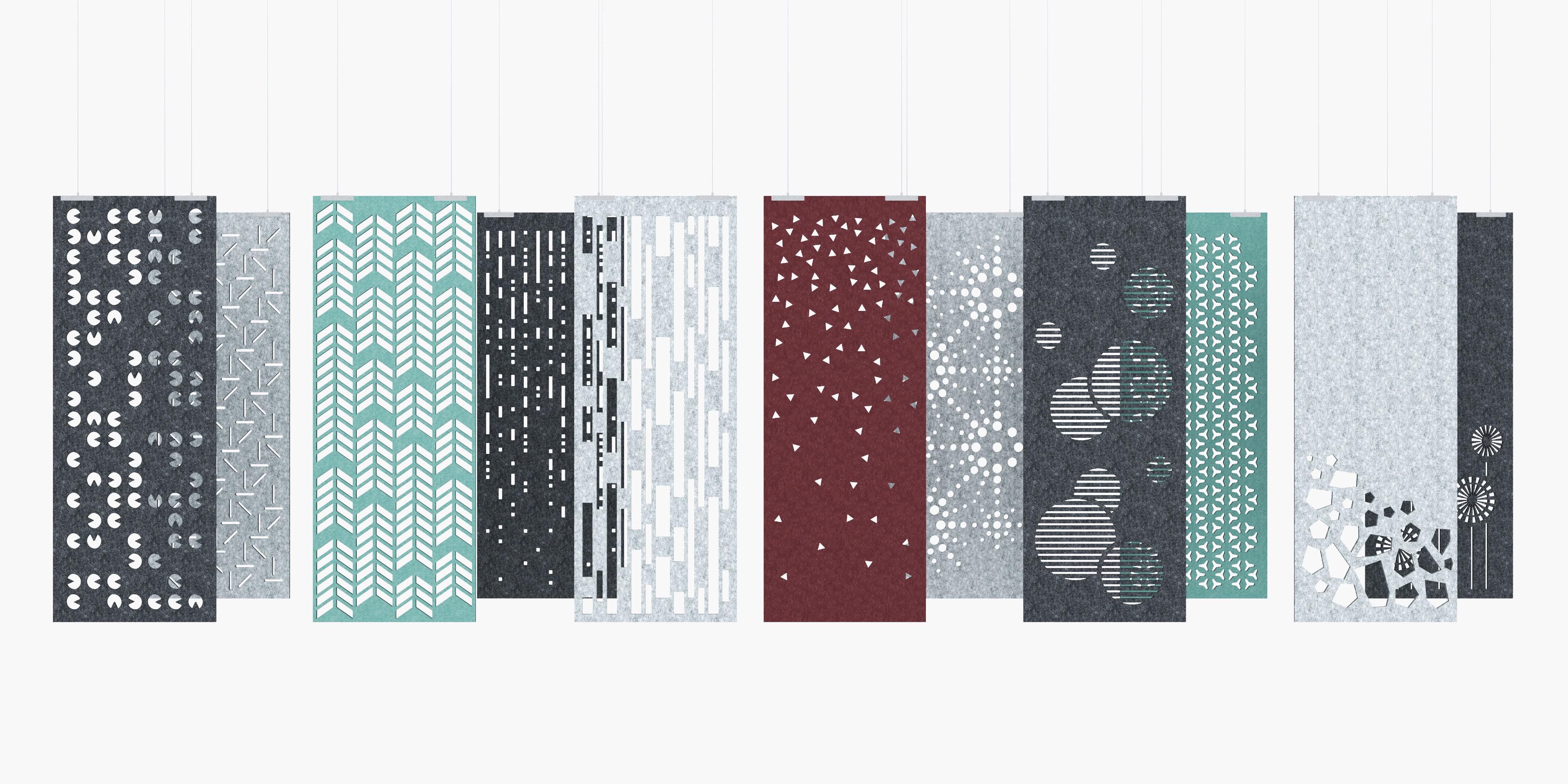 You can match the panels perfectly to the style of any office, using a wide range of PET material colours and designing cut-out patterns.