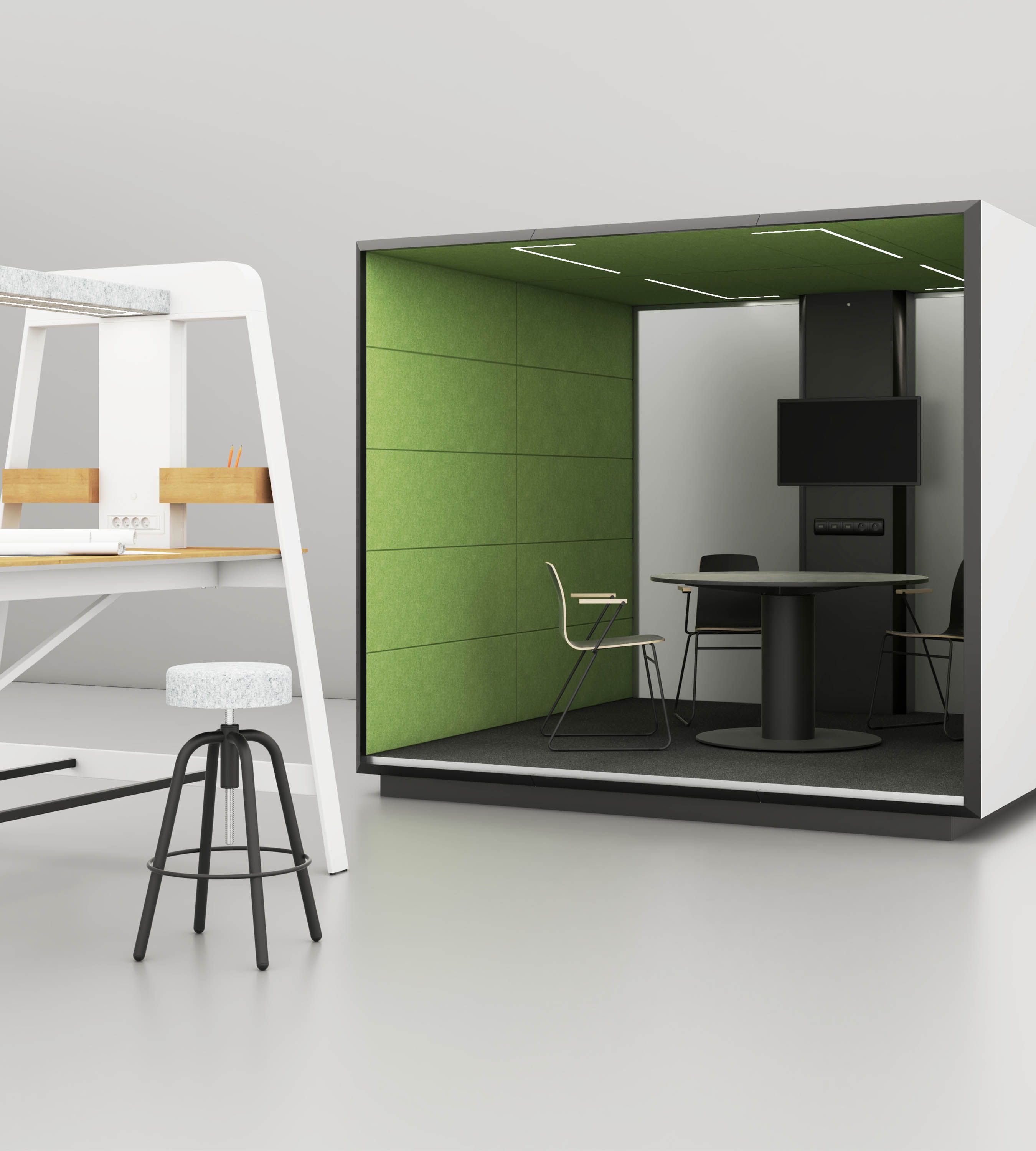 Acoustic cubicles provide a very good environment for confidential conversations and meetings. They also allow you to work in a focused manner.