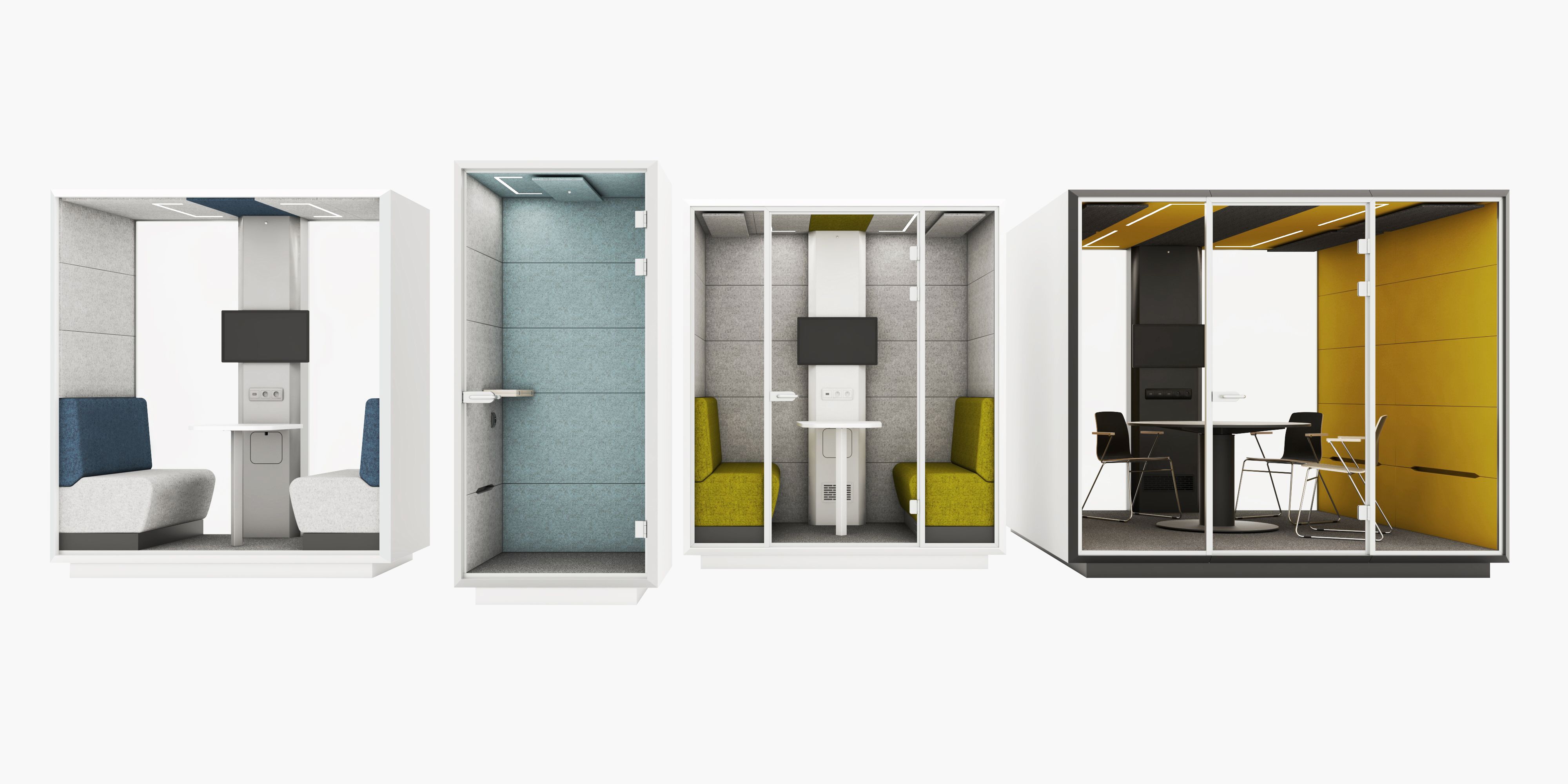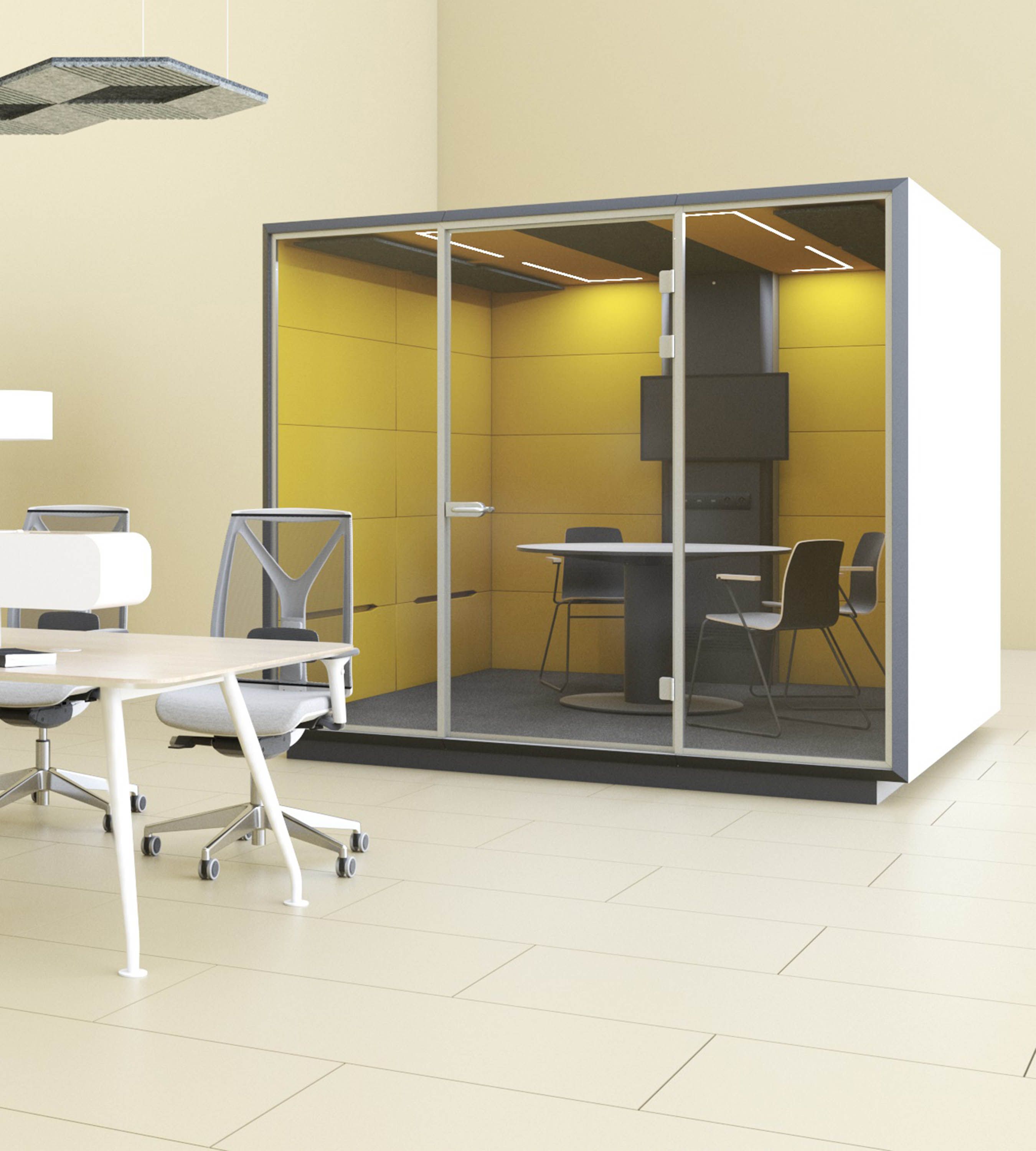 Acoustic cubicles provide a very good environment for confidential conversations and meetings. They also allow you to work in a focused manner.