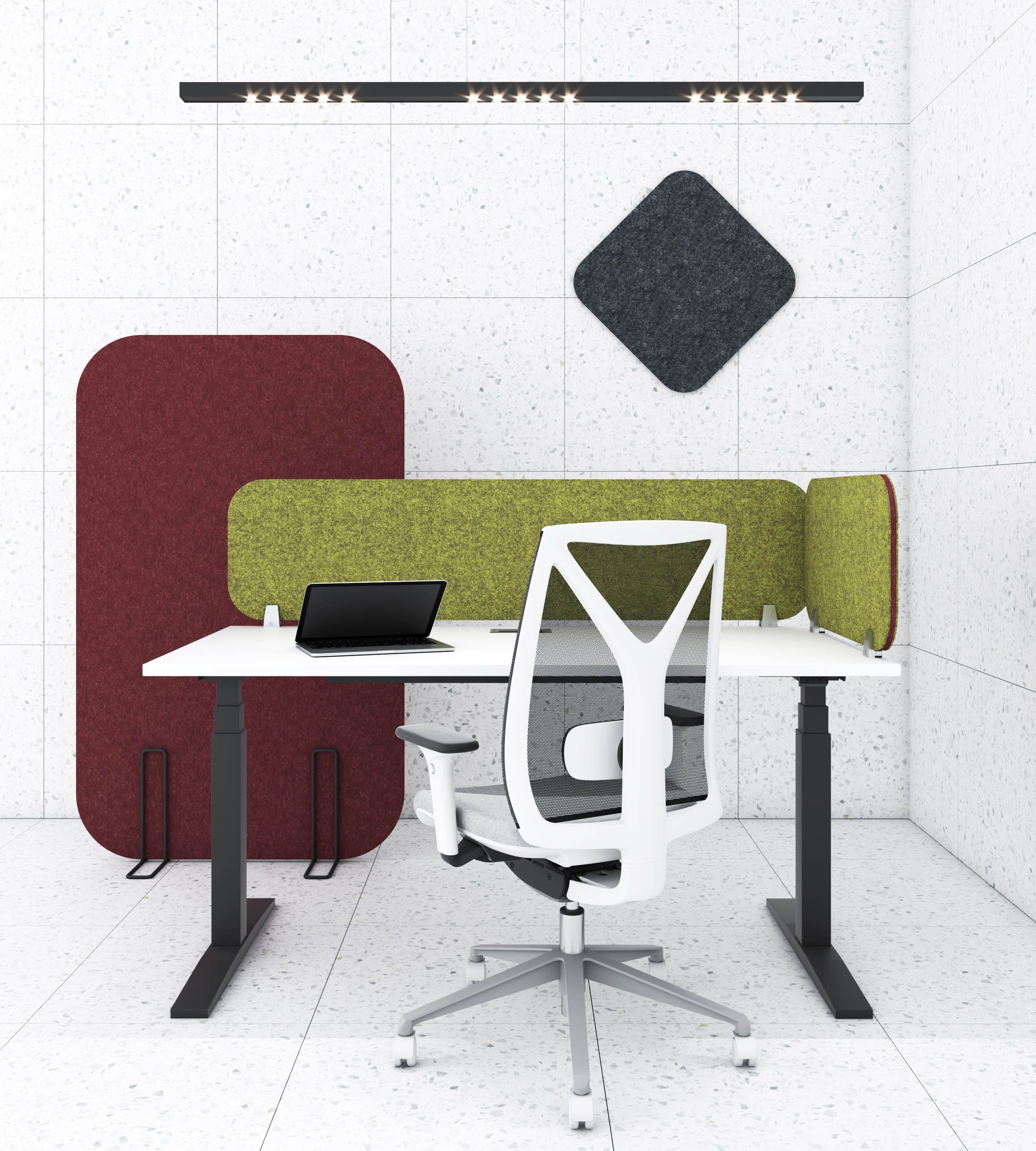 Elementy kolekcji w podstawowej wersji wykonane są z płyt PET. Możliwość zastosowania dodatkowej warstwy filcu akustycznego poszerza wybór zestawień kolorystycznych i uatrakcyjnia wygląd produktu.