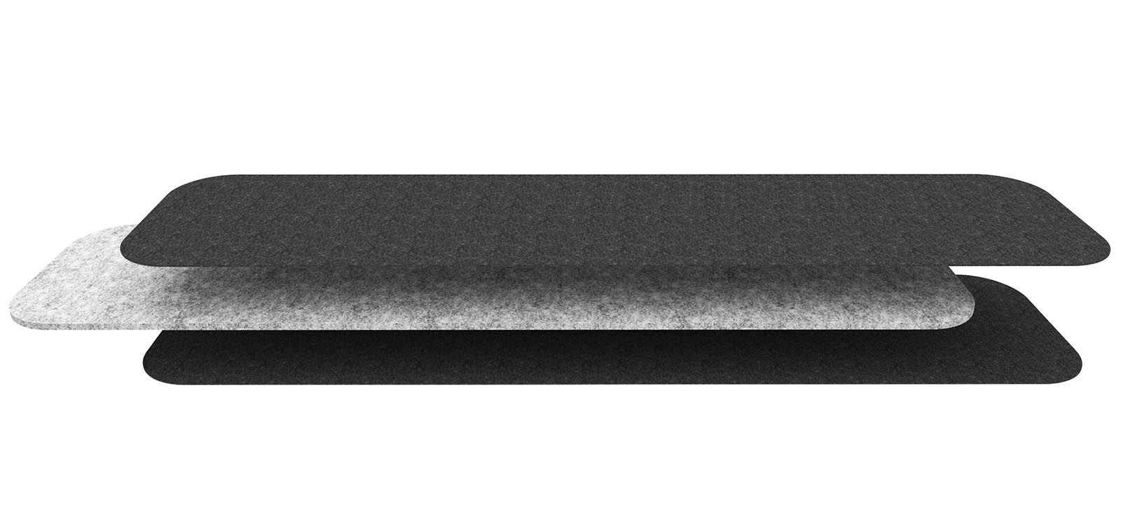 Elementy kolekcji w podstawowej wersji wykonane są z płyt PET. Możliwość zastosowania dodatkowej warstwy filcu akustycznego poszerza wybór zestawień kolorystycznych i uatrakcyjnia wygląd produktu.