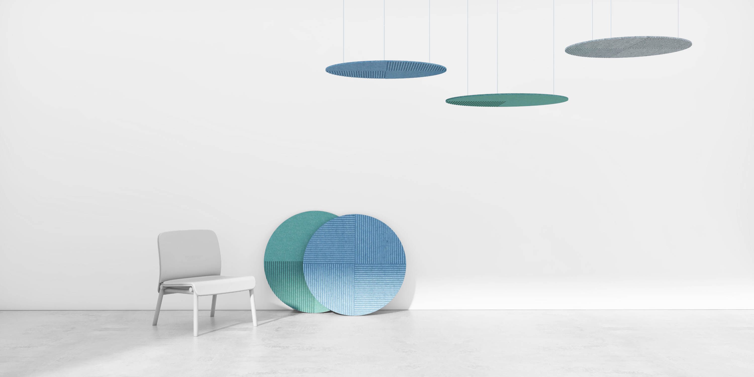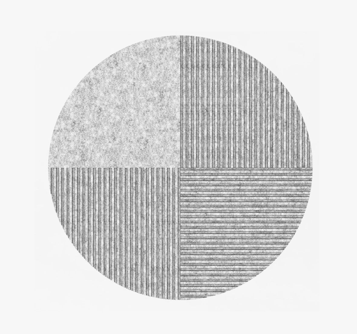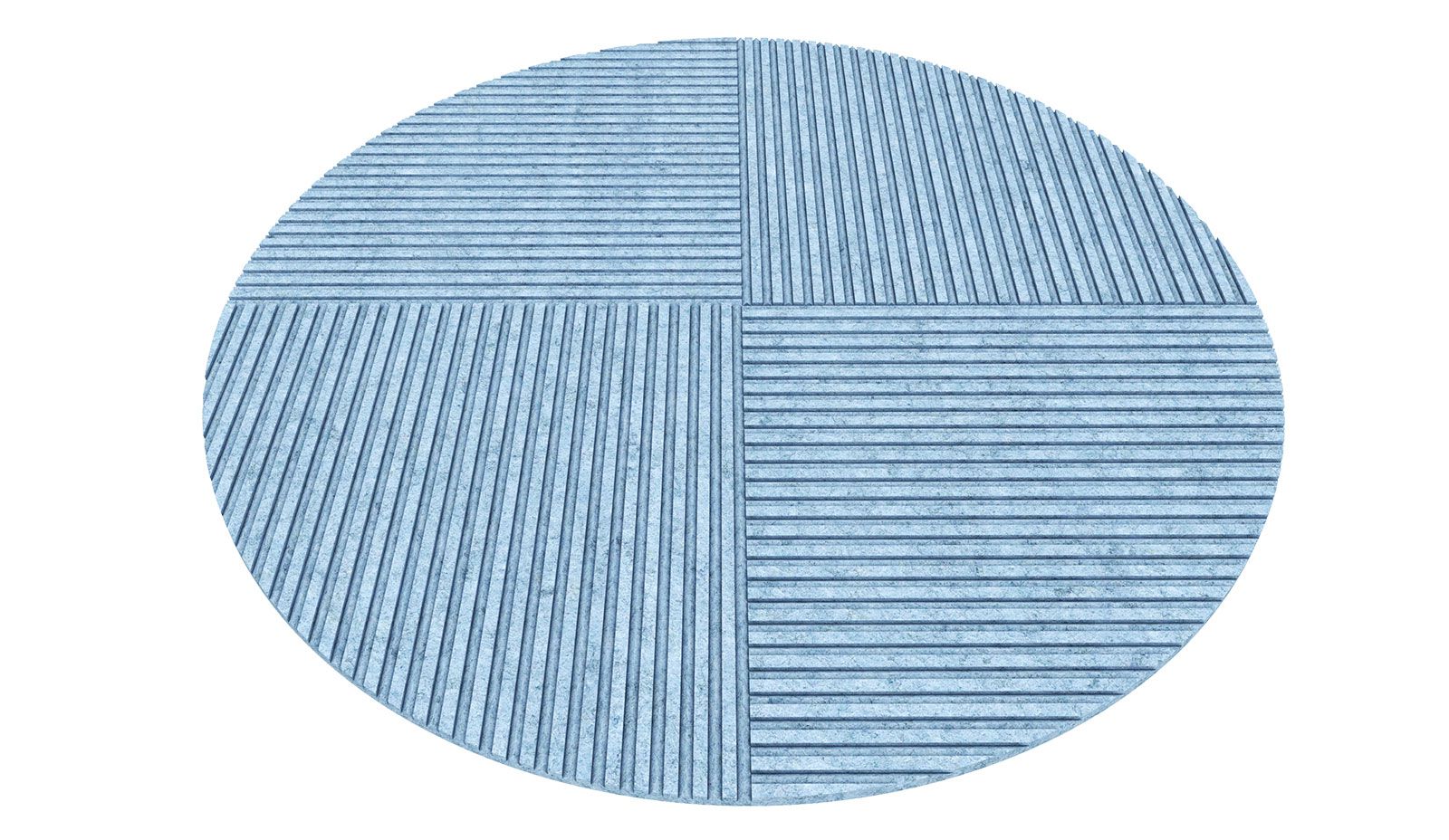 Materiał PET, z którego wykonane są panele akustyczne ma właściwości dźwiękochłonne. Wzory na panelach uzyskane poprzez frezowanie równoległych linii dodatkowo rozpraszają dźwięk.