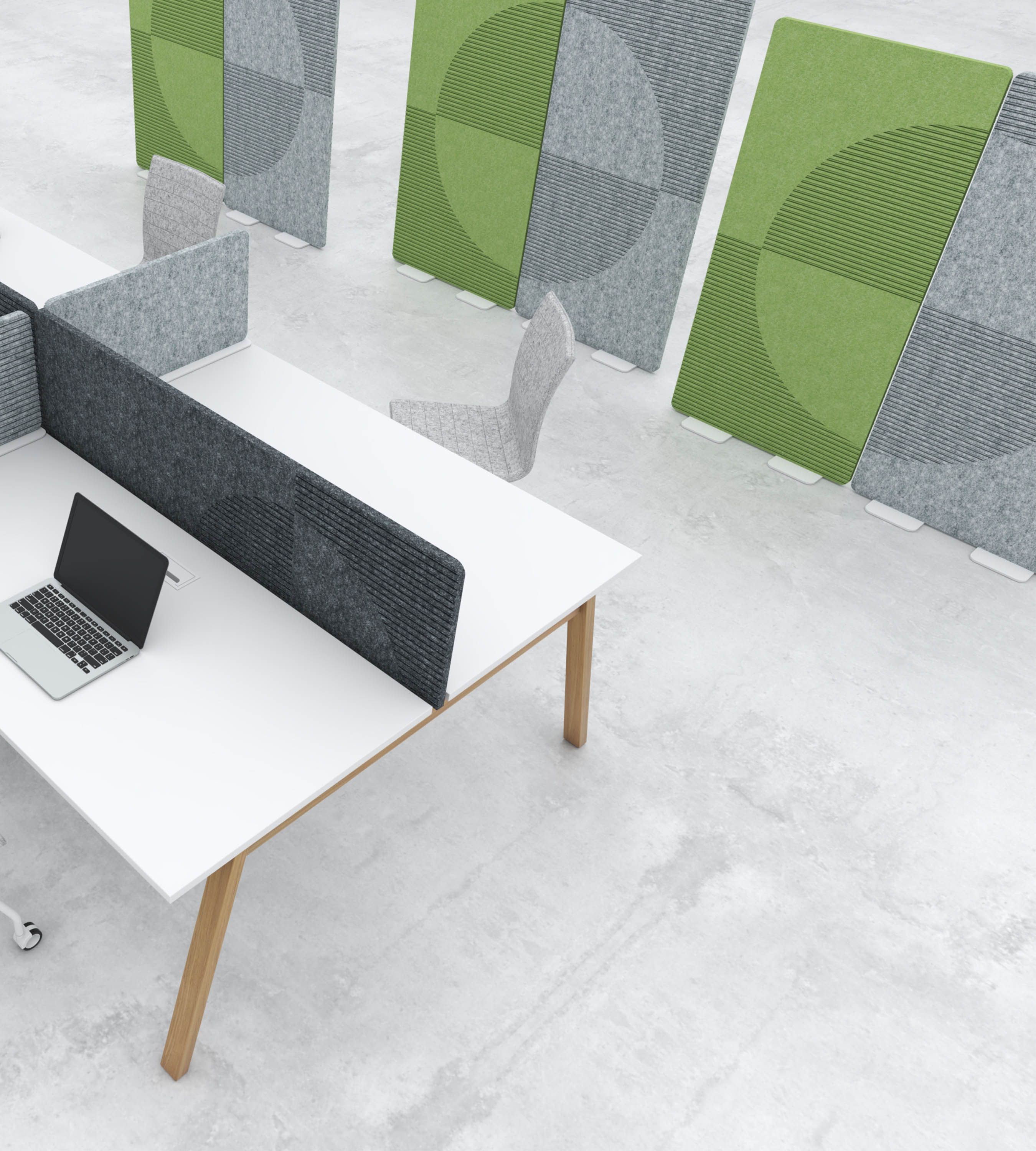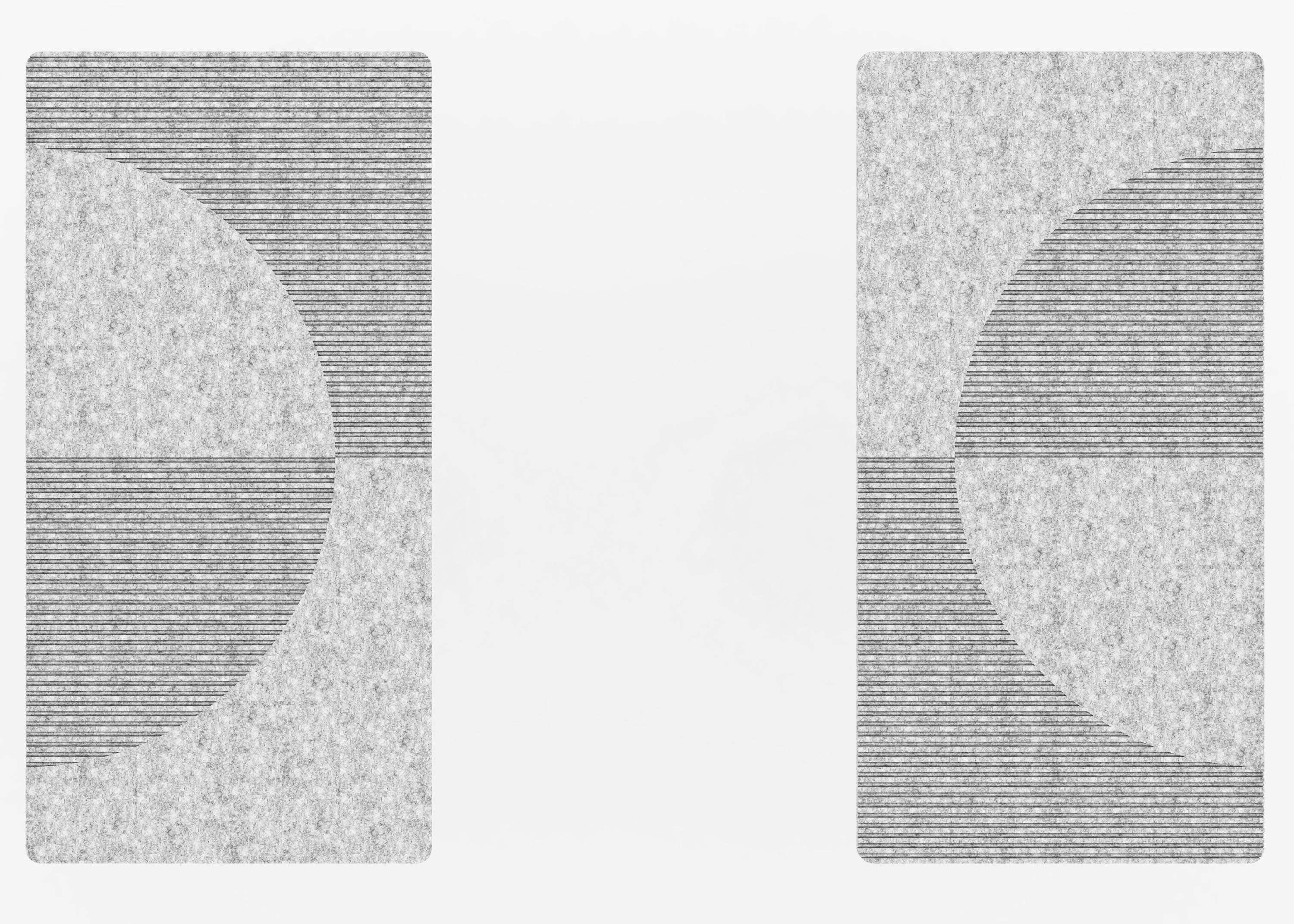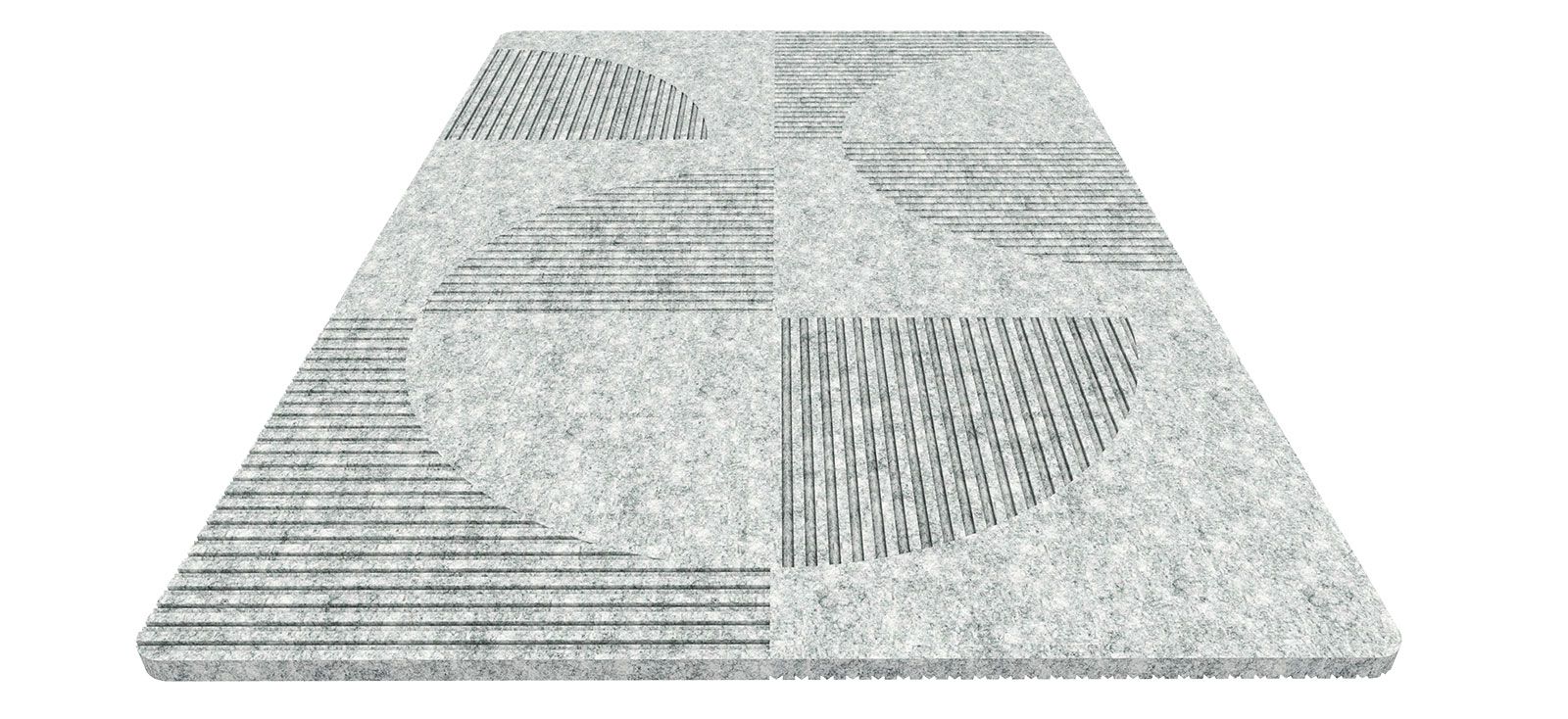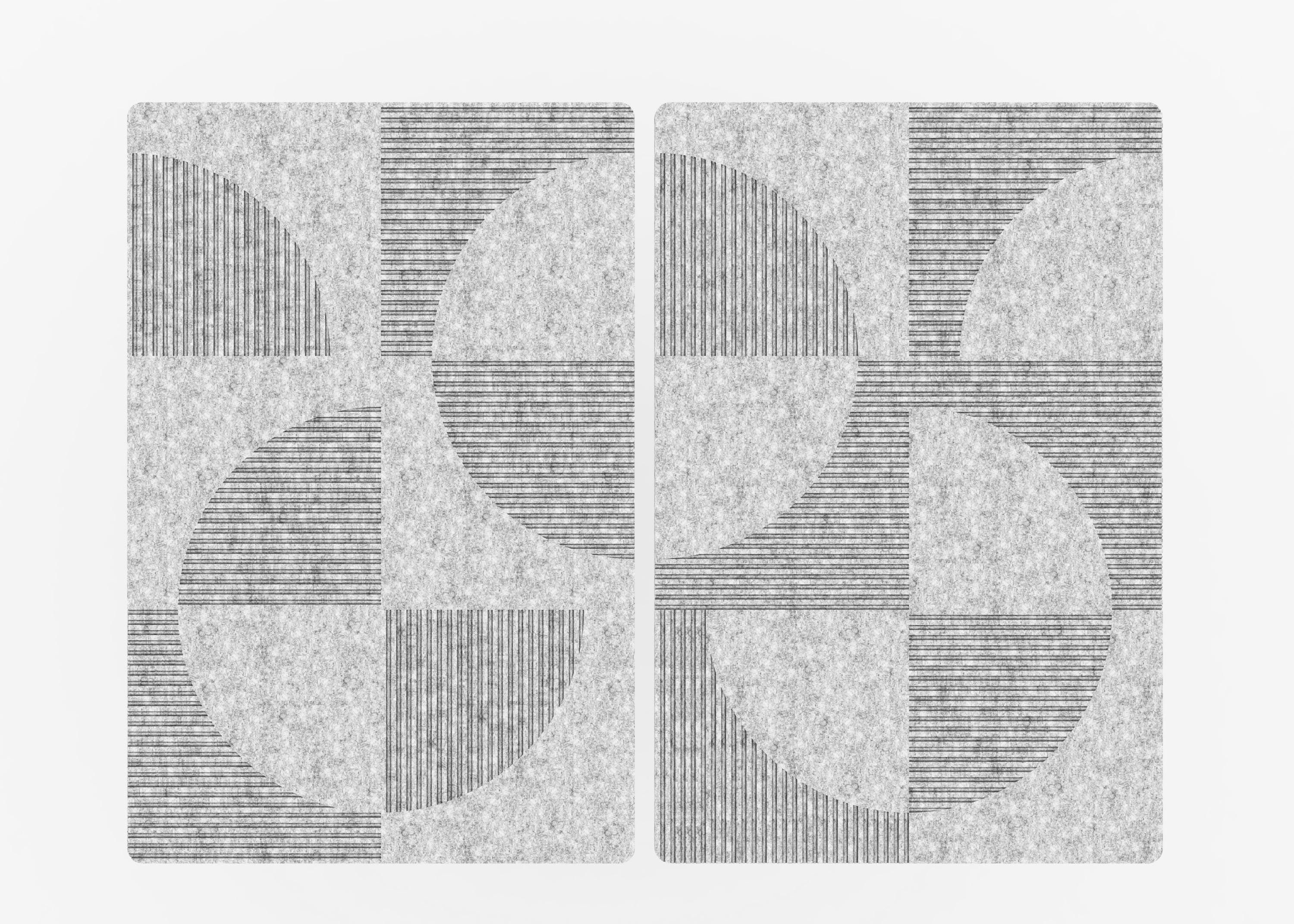 Materiał PET, z którego wykonane są panele akustyczne ma właściwości dźwiękochłonne. Wzory na panelach uzyskane poprzez frezowanie równoległych linii dodatkowo rozpraszają dźwięk.