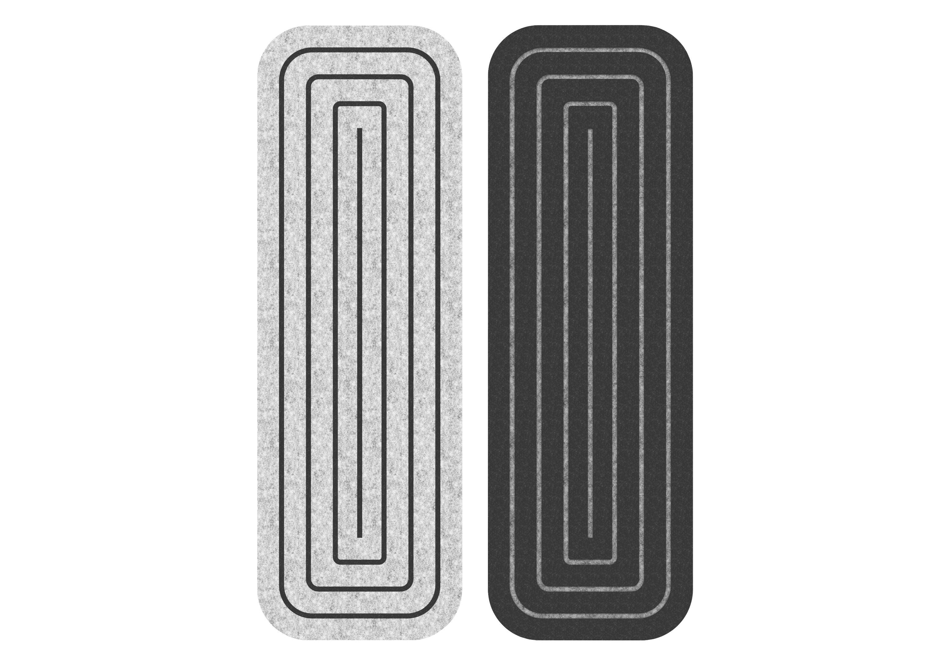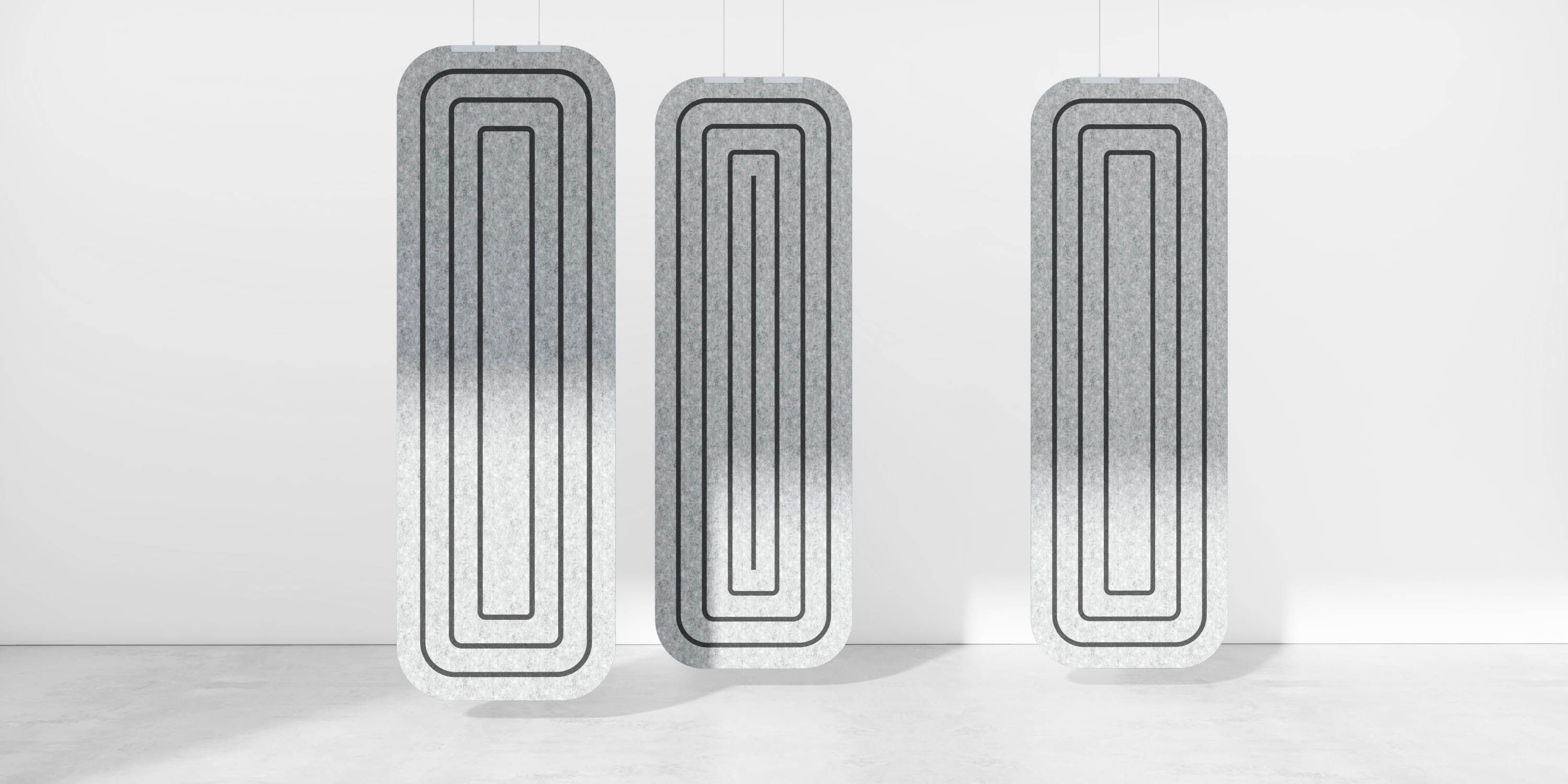 Panele z kolekcji 60's przyjmują proste kształty kwadratu bądź prostokąta, zmiękczonego poprzez zaokrąglone narożniki. Panele wzbogacone są frezowaniami wypełnionymi filcem akustycznym.