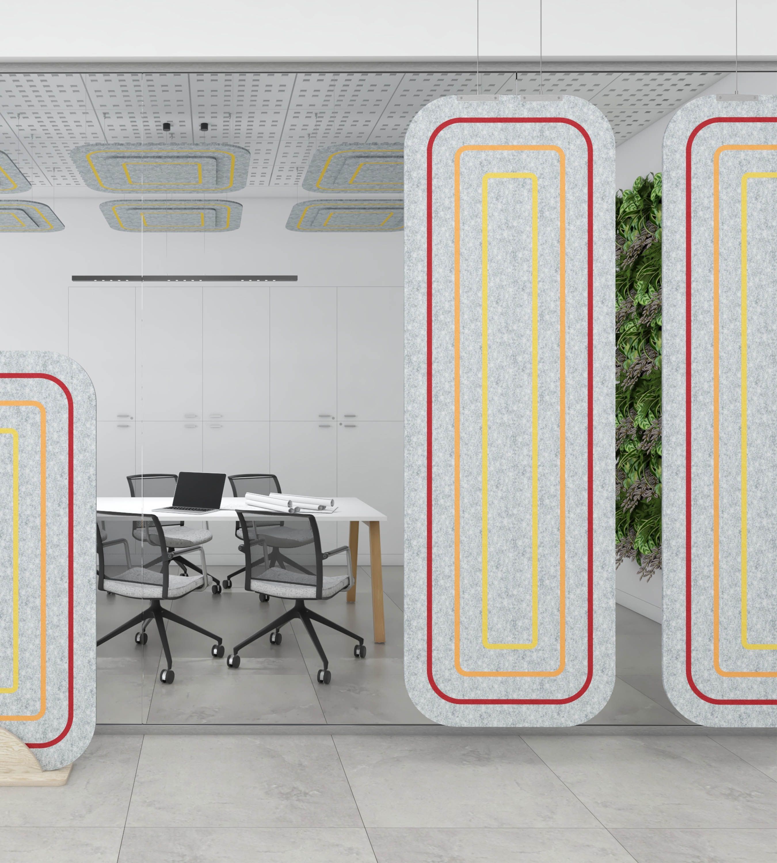 Akustyczne panele ścienne inspirowane stylistyką lat 60-tych pobudzają kreatywność.