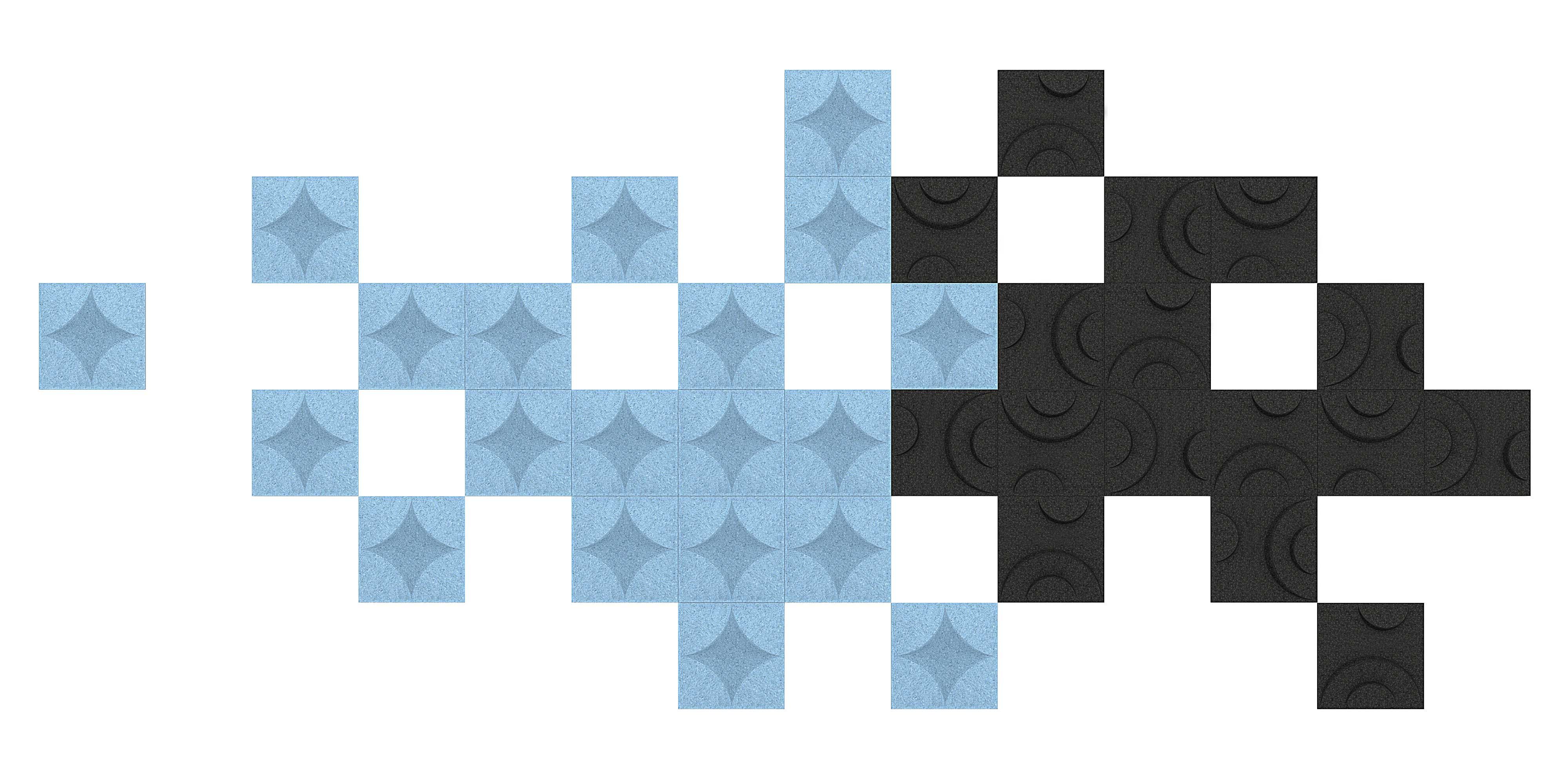 Materiał PET, z którego wykonane są panele pochodzi w 75% z recyklingu. Występuje w gamie aż 38 kolorów, co pozwala projektować kompozycje jedno- lub wielobarwne dopasowane do każdego wnętrza.