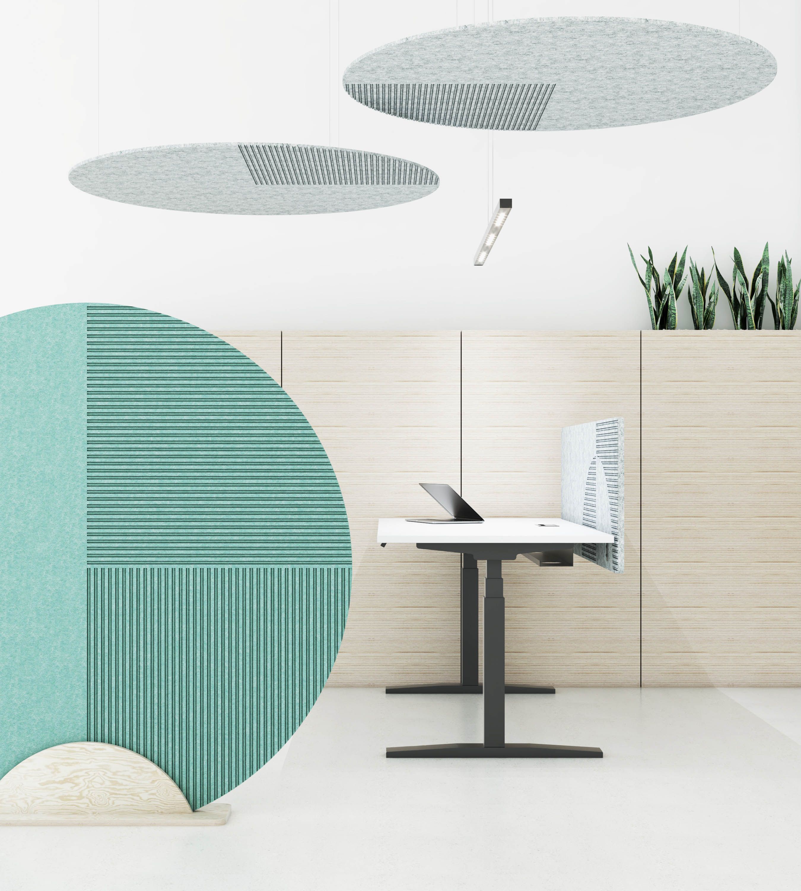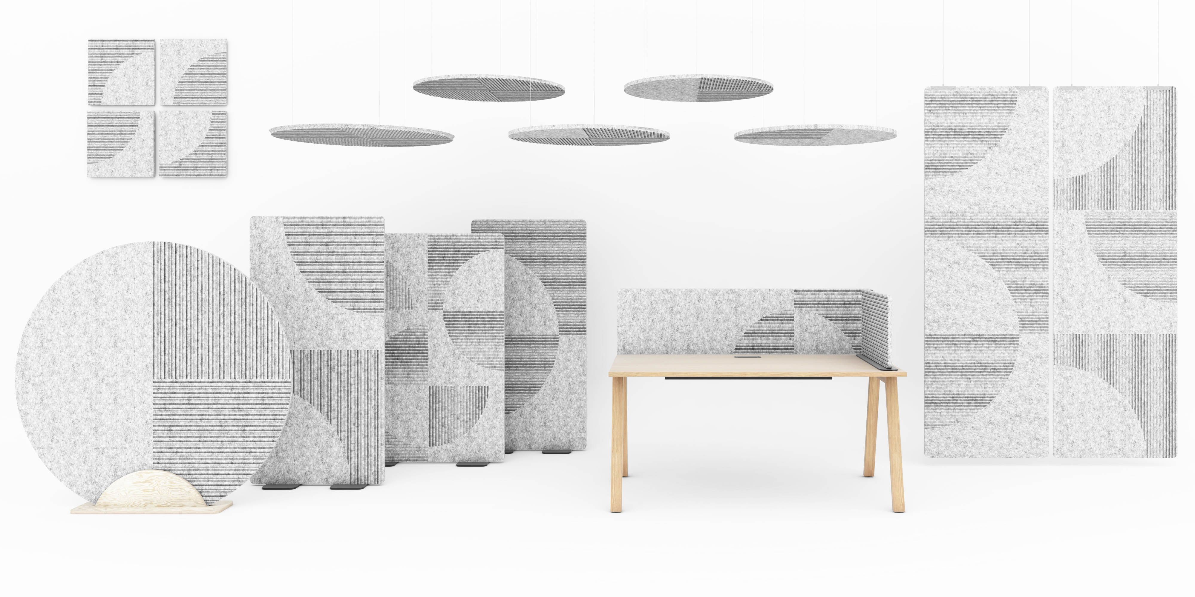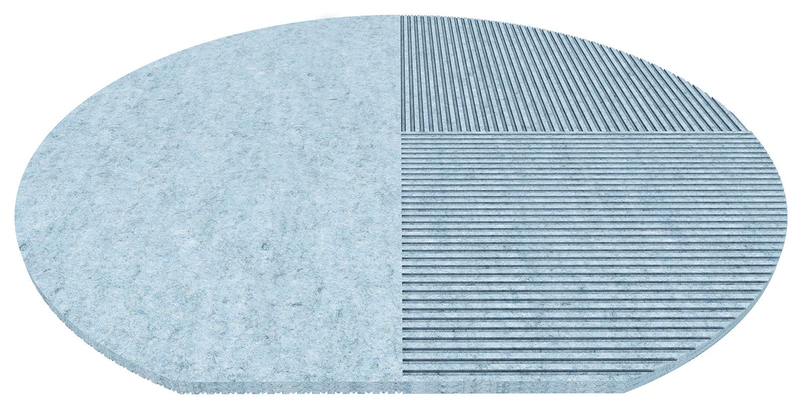 Materiał PET, z którego wykonane są panele akustyczne ma właściwości dźwiękochłonne. Wzory na panelach uzyskane poprzez frezowanie równoległych linii dodatkowo rozpraszają dźwięk.